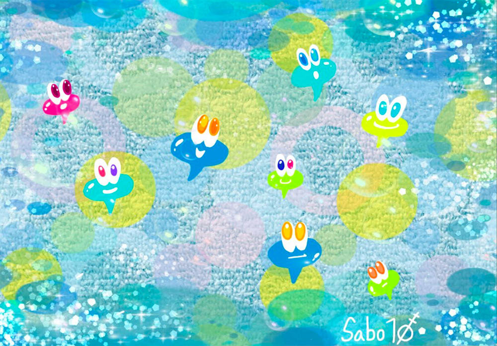 中央、おえかきあさみさん。右、さぼてん。左、おはなまとぺの順に合わせて呼んでASABOHANA(アサボハナ)