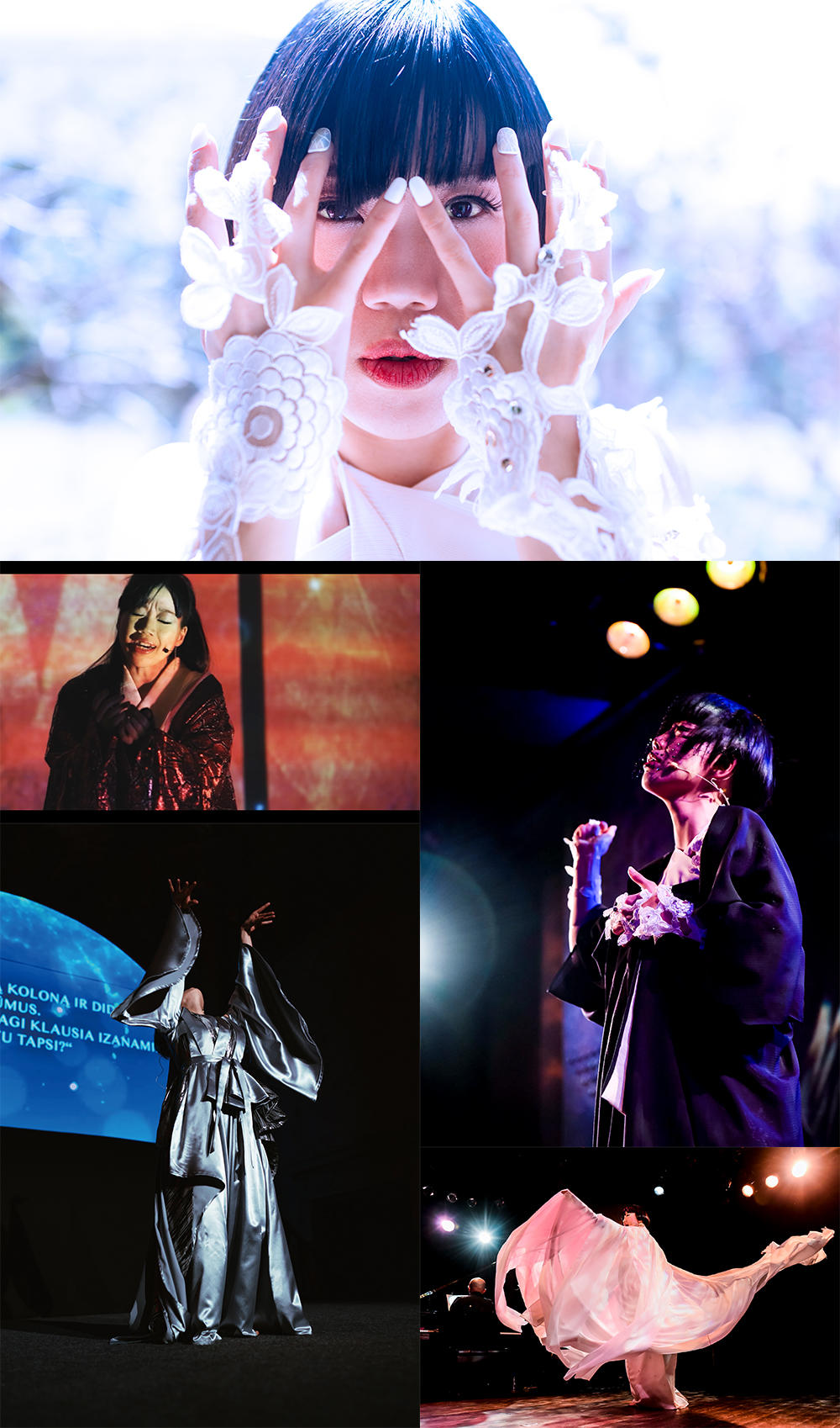 アーティスト本人が、古事記を独自に解釈・再構築して戯曲に仕立て上げ、劇中歌を作詞・作曲。公演では、イザナミを演じ切り、歌い舞った。