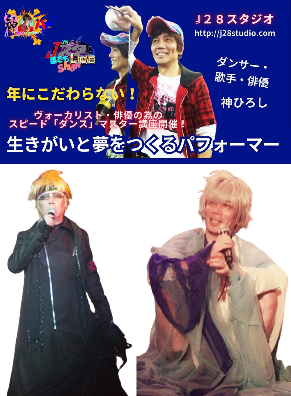 小生、神ひろしさんの主宰するライブ:「神パ」「Jスタ誰でもライブショー」に出演させて頂いておりますが、パフォーマーとしては未熟者である身の者に、手厚く指導してくださり、また、ご自身のライブショーでは、毎月毎月華麗なショーを繰り広げられております!ダンスパフォーマーと共にシンガーとしても観客を時には激しく時には優しく響く歌声に魅了されております!ライブショーを見たらその存在感に圧倒されてしまいます!神パ、Jスタのショー元より、ご自身が琴線に触れるショーに出演するスタンスもファンにとっては堪らなく素敵です!益々の活躍を応援し、また、私自身も神ひろしさんを応援していきたいです!どうぞ、、一度その眼差しでご覧になれば、、分かるはずです!