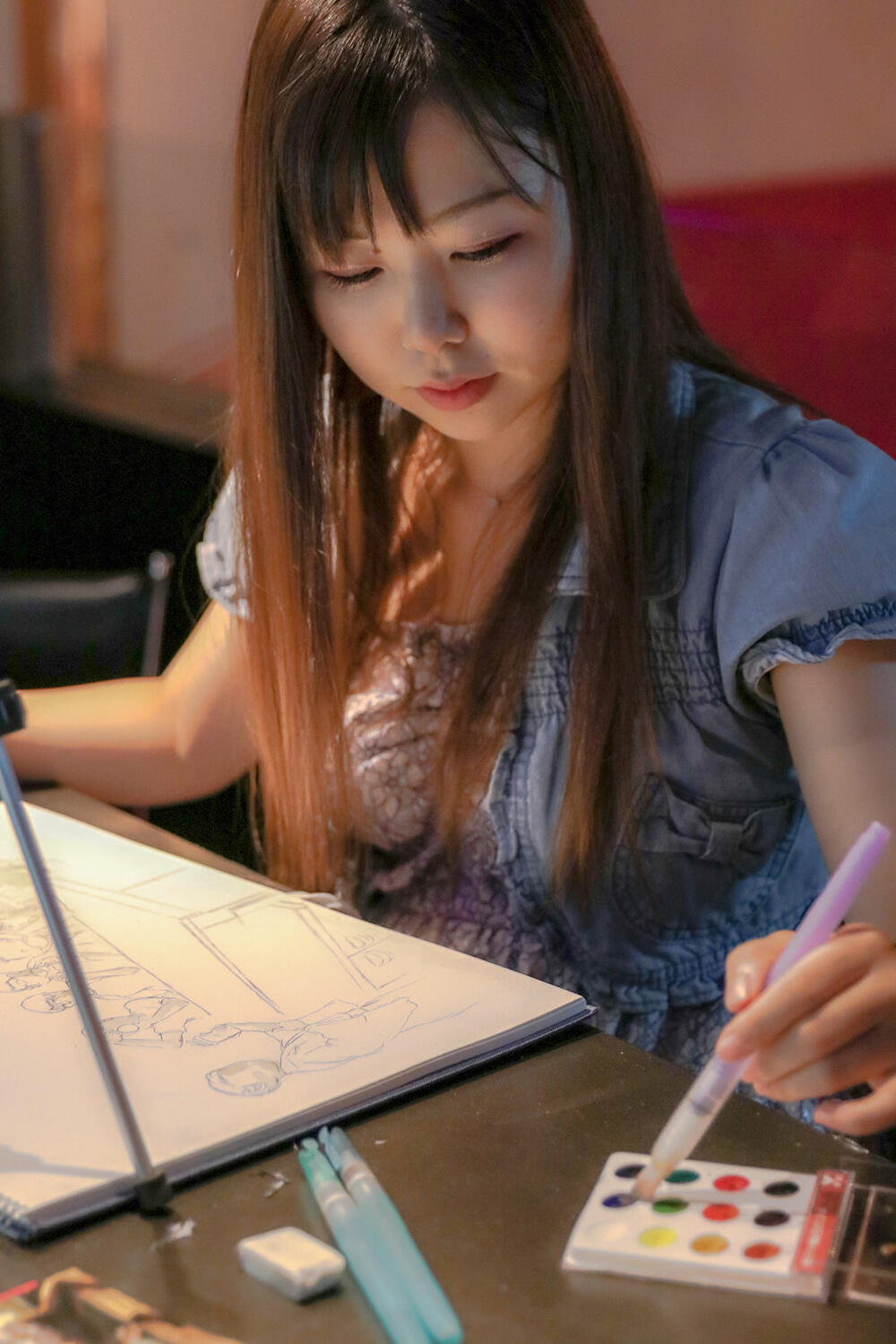 それまでは絵に関係のない歯科の仕事をしてきたが、今ではアーティスト兼歯科衛生士として活動している。
