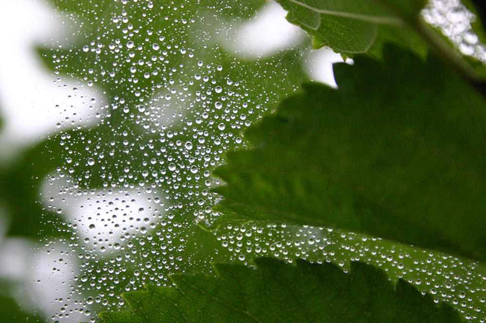 クモの巣に残った雨粒がキレイだなぁと思ったもので。